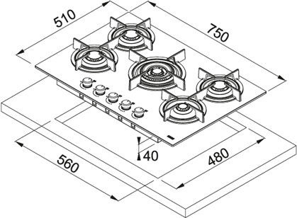 Płyta gazowa Franke Crystal FHCR 755 4G TC HE BK C