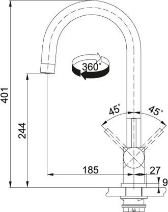 Obrót wylewki w stopniach 360°