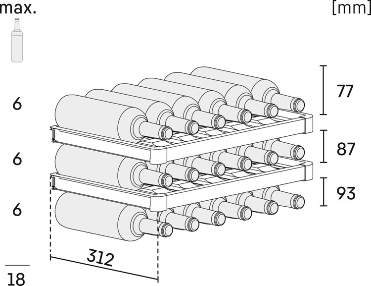 Maksymalna liczba butelek typu Bordeaux o poj. 0,75 l *