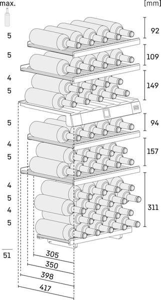 Maksymalna liczba butelek typu Bordeaux o poj. 0,75 l 51