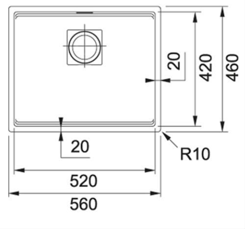 - Mały promień zaokrąglenia komory (10 mm) sprawia, że zlewozmywak wygląda nowocześnie i łatwo jest go utrzymać w czystości.