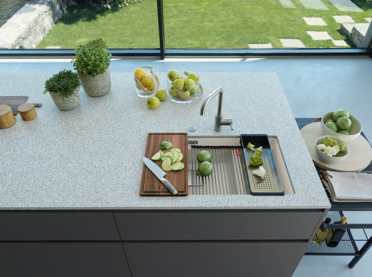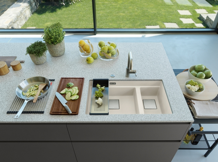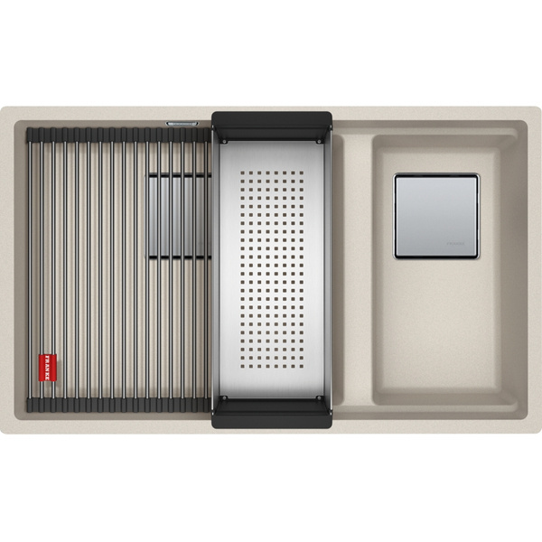 Komora do podbudowy z linii Kanon KNG 160-46-21 w zestawie zawiera wkładę ociekową i rollmatę oraz korek automatyczny Flow Pro, sterowany przyciskiem Easy Click w wykończeniu ze stali szlachetnej. Dzięki specjalnie zaprojektowanej krawędzi wewnętrznej, można komfortowo korzystać z akcesoriów na dwóch poziomach pracy. Zlewozmywak wyprodukowany jest z materiału Fragranite, który składa się w 80% z naturalnego granitu. Dzięki zastosowaniu bardzo drobnych cząsteczek granitu, uzyskano zlewozmywak idealnie gładki i delikatny w dotyku. Wszystkie zlewozmywaki fragranitowe Franke wyprodukowane są z wykorzystaniem technologii Sanitized®, w związku z czym zawierają szkło fosforanowe z dodatkiem srebra, ograniczającym rozwój bakterii do 99%. Wszystkie zlewozmywaki z materiału Fragranite są odporne na zarysowania, uderzenia i zaplamienie, a ich kolor nie zmienia się z upływem czasu. Są również odporne na krótkotrwałe działanie wysokiej temperatury (do 280°C przez 15 sek.).