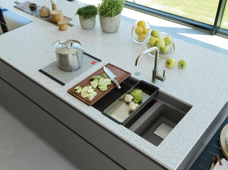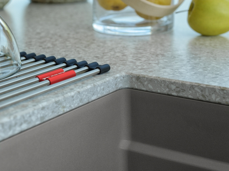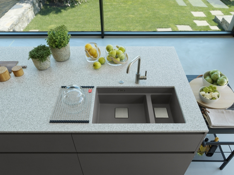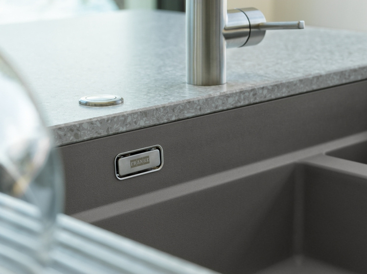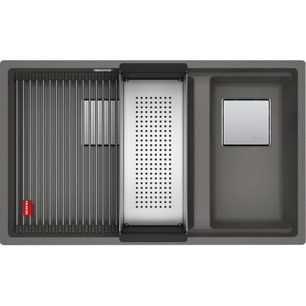 Komora do podbudowy z linii Kanon KNG 160-46-21 w zestawie zawiera wkładę ociekową i rollmatę oraz korek automatyczny Flow Pro, sterowany przyciskiem Easy Click w wykończeniu ze stali szlachetnej. Dzięki specjalnie zaprojektowanej krawędzi wewnętrznej, można komfortowo korzystać z akcesoriów na dwóch poziomach pracy. Zlewozmywak wyprodukowany jest z materiału Fragranite, który składa się w 80% z naturalnego granitu. Dzięki zastosowaniu bardzo drobnych cząsteczek granitu, uzyskano zlewozmywak idealnie gładki i delikatny w dotyku. Wszystkie zlewozmywaki fragranitowe Franke wyprodukowane są z wykorzystaniem technologii Sanitized®, w związku z czym zawierają szkło fosforanowe z dodatkiem srebra, ograniczającym rozwój bakterii do 99%. Wszystkie zlewozmywaki z materiału Fragranite są odporne na zarysowania, uderzenia i zaplamienie, a ich kolor nie zmienia się z upływem czasu. Są również odporne na krótkotrwałe działanie wysokiej temperatury (do 280°C przez 15 sek.).