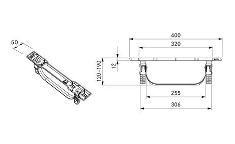 Wymiary (szerokość x głębokość x wysokość): 400 x 50 x 118-188 mm