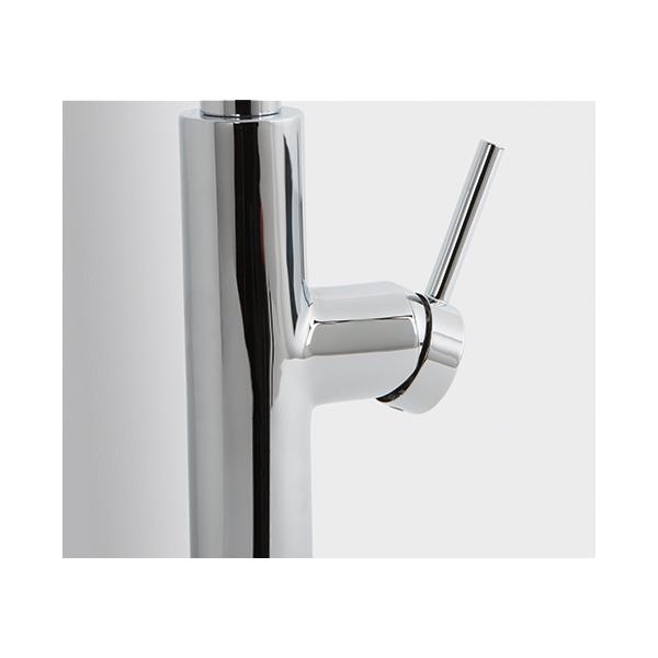 - Wychylenie dźwigni mieszacza do przodu ułatwia sterowanie strumieniem wody, również wtedy, kiedy bateria znajduje się blisko ściany.