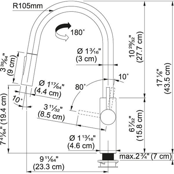 Bateria Franke Pescara L Slide-In Pull-Out Spray Chrom 115.0538.940