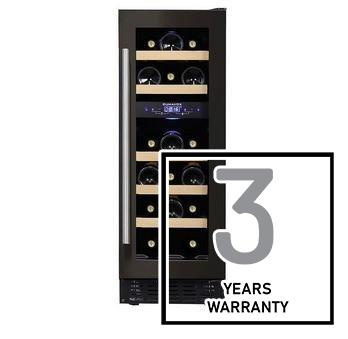 • Model podblatowy o podwójnej strefie temperaturowej, 17 butelek i szerokości 300 mm, z eleganckim wyglądem zewnętrznym i klamką ze stali nierdzewnej.