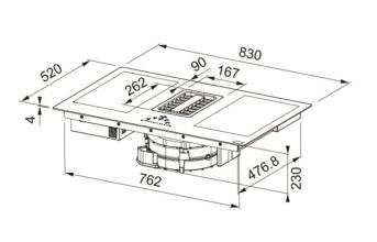 • Żeliwna kratka wlotu powietrza zlicowana jest z płytą, która ma możliwość montażu na równi z blatem.