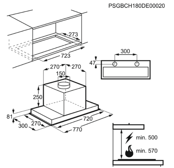 Min. odległość od powierzchni płyty elektrycznej [cm]: 50