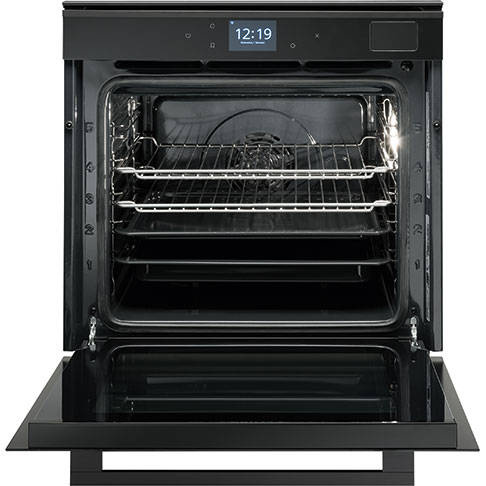Piekarnik do zabudowy z funkcją pary Franke Mythos FMY 99 HS ma 73 litry pojemności. Perfekcyjne pieczenie, w tym parowe Full Steam, zapewnia 60 programów, 19 funkcji i 15 funkcji specjalnych Sterowanie odbywa się za pomocą dotykowego kolorowego wyświetlacza TFT, menu jest języku polskim. Model ma czarne szkło i detale z czarnej stali. Wyposażony jest w termoobieg i czyszczenie