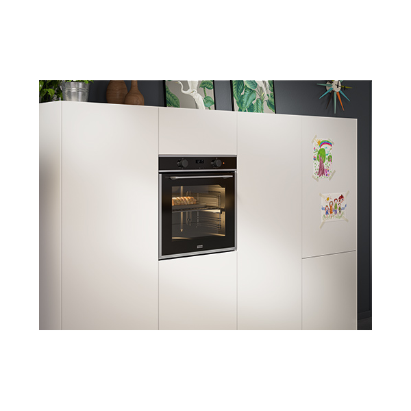 Piekarnik do zabudowy Franke Maris FMA 86 H XS ma 71 litrów pojemności i jest intuicyjny w obsłudze. Model ma 8 funkcji oraz 1 funkcję specjalną. Oferuje do wyboru pięć poziomów pieczenia. Wyposażony jest w termoobieg oraz czyszczenie parowe. Sterowanie odbywa się ozdobnymi, czarnymi pokrętłami, a sam piekarnik ma czarne szkło i detale ze stali szlachetnej. Piekarnik do zabudowy Maris wyposażony jest w cichy domyk typu Smoooth2Close.
