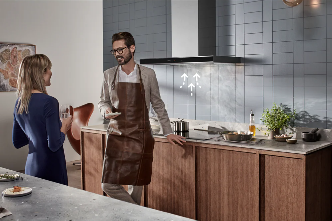 Dzięki okapowi Breeze 800 nie musisz już przekrzykiwać głośnego wentylatora, gdy zasiadasz do posiłku z rodziną i przyjaciółmi. Po zakończeniu gotowania wystarczy nacisnąć przycisk, aby kuchnia została bezgłośnie odświeżona.