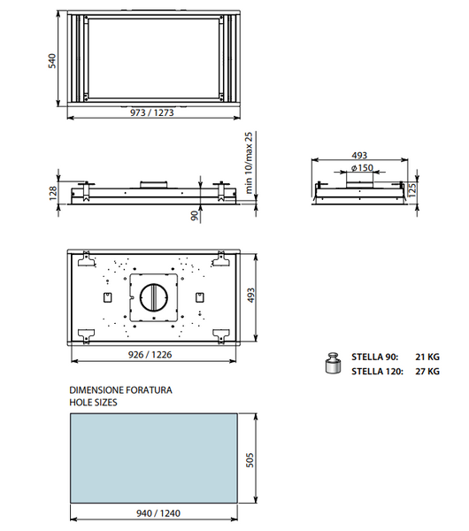 Okap sufitowy Falmec Stella Plus 90 czarny - korpus bez silnika, z pilotem