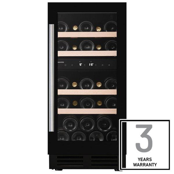 Model podblatowy, dwustrefowy i możliwością przechowywania 32 butelek, wyróżniający się eleganckim wyglądem zewnętrznym i uchwytem drzwi ze stali nierdzewnej. Model DUNAVOX Flow- 32D pasuje idealnie do nowoczesnej kuchni. Butelki są umieszczone na solidnych drewnianych półkach i oświetlone białym, bursztynowym i niebieskim oświetleniem wewnętrznym LED. Temperatura w dolnej strefie musi być niższa niż w górnej. Należy zwrócić uwagę, że model ten jest przeznaczony do zabudowy podblatowej.