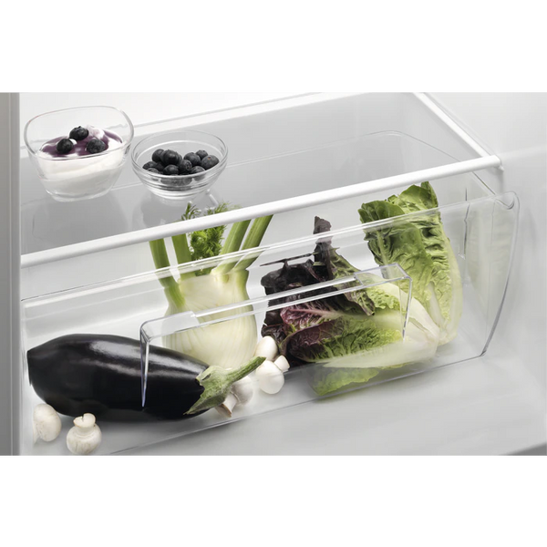 Przezroczysta szuflada o pełnej szerokości na warzywa ułatwia przechowywanie dużych i długich produktów. Nie wahaj się w czasie zakupów, wiedząc, że masz w chłodziarce miejsce na wygodne przechowywanie dużych produktów.