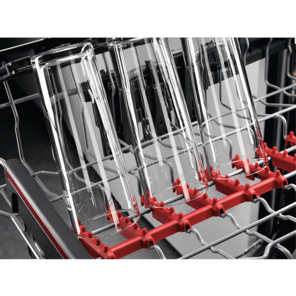 Nawet mocne zmywarki powinny ostrożnie obchodzić się ze szklanymi naczyniami. Na szczęście górny koszyk w tej zmywarce jest wyposażony w 7000 SoftGrips oraz SoftSpikes, które bezpiecznie przytrzymują szkło i dbajją, by go nie zarysować ani nie uszkodzić.