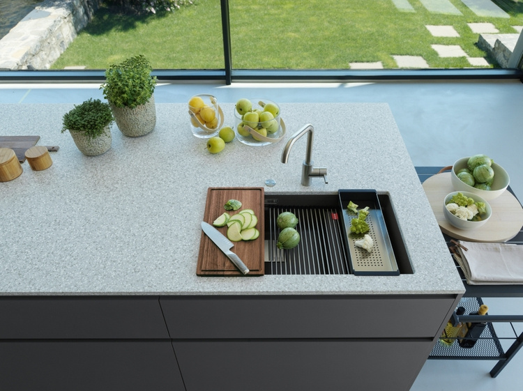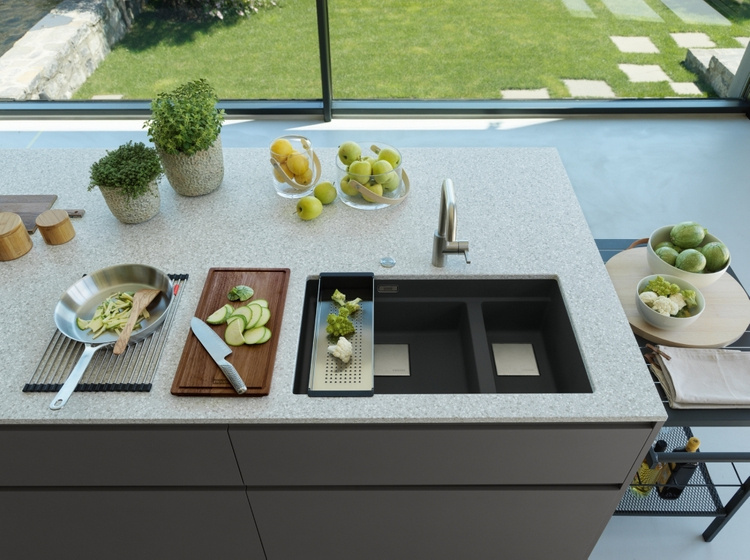 Komora do podbudowy z linii Kanon KNG 160-46-21 w zestawie zawiera wkładę ociekową i rollmatę oraz korek automatyczny Flow Pro, sterowany przyciskiem Easy Click w wykończeniu ze stali szlachetnej. Dzięki specjalnie zaprojektowanej krawędzi wewnętrznej, można komfortowo korzystać z akcesoriów na dwóch poziomach pracy. Zlewozmywak wyprodukowany jest z materiału Fragranite, który składa się w 80% z naturalnego granitu. Dzięki zastosowaniu bardzo drobnych cząsteczek granitu, uzyskano zlewozmywak idealnie gładki i delikatny w dotyku. Wszystkie zlewozmywaki fragranitowe Franke wyprodukowane są z wykorzystaniem technologii Sanitized®, w związku z czym zawierają szkło fosforanowe z dodatkiem srebra, ograniczającym rozwój bakterii do 99%. Wszystkie zlewozmywaki z materiału Fragranite są odporne na zarysowania, uderzenia i zaplamienie, a ich kolor nie zmienia się z upływem czasu. Są również odporne na krótkotrwałe działanie wysokiej temperatury (do 280°C przez 15 sek.).
