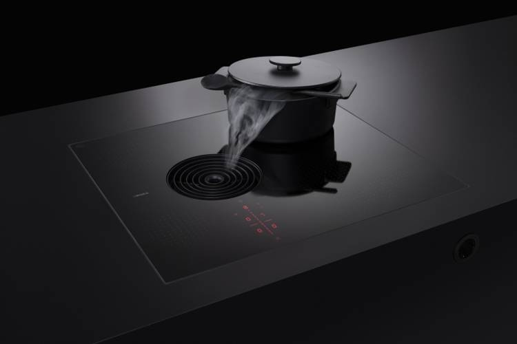 Płyta grzewcza i wyciąg są całkowicie zlicowane. Idealne linie pozwalają na subtelną i wysoce elegancką integrację z każdą nowoczesną architekturą kuchni. Praca w trybie czuwania jest praktycznie niewidoczna i zredukowana do podstawowych czynności niezbędnych podczas pracy dzięki inteligentnemu podświetleniu.