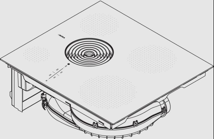 S Pure indukcyjna płyta grzewcza ze zintegrowanym wyciągiem oparów — tryb pracy z odprowadzeniem powietrza na zewnątrz PURSA