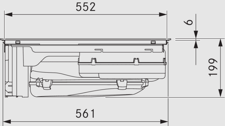 Dzięki wysokości montażowej wynoszącej niecałe 200 mm oraz wbudowanej jednostce filtra w obiegu zamkniętym zagwarantowane jest maksymalne wykorzystanie przestrzeni w szafce dolnej. Nawet w aneksach kuchennych o głębokości 60 cm nie ma konieczności skracania szuflad w trybie odprowadzania wilgoci. Zupełnie inaczej niż zwykle.