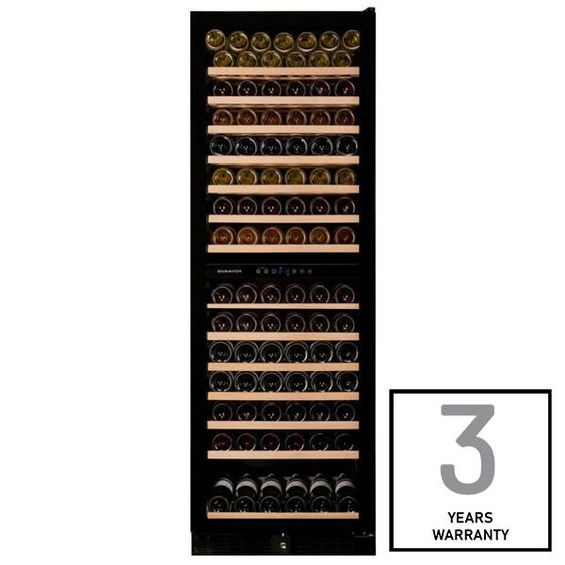 Dwustrefowy, wolnostojący model do przechowywania 166 butelek z serii Grande firmy Dunavox. Wyróżniający się eleganckim wyglądem - DUNAVOX Grande-166 jest idealny do nowoczesnych kuchni, barów i hoteli. Butelki są umieszczone na drewnianych półkach w oszałamiającym jasnoniebieskim wnętrzu. Temperatura w górnej strefie musi być niższa niż w dolnej. Należy pamiętać, że ten model nadaje się do użytku wolnostojącego lub do zabudowy.