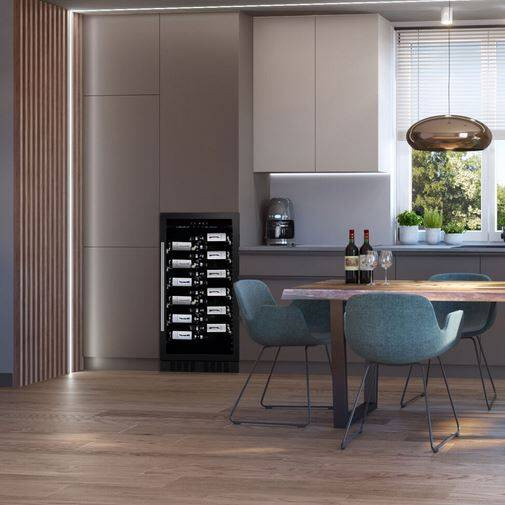 Jednostrefowy, wolnostojący model do przechowywania 70 butelek z serii Grande firmy Dunavox. Wyróżniająca się eleganckim wyglądem zewnętrznym i uchwytem ze stali nierdzewnej, DUNAVOX Grande-70 doskonale pasuje do nowoczesnych kuchni, restauracji i hoteli.Elegancki wygląd zewnętrzny i uchwyt ze stali nierdzewnej sprawiają, że DUNAVOX grande -70 idealnie pasuje do nowoczesnej , kuchni. Butelki są umieszczone na opatentowanych półkach i oświetlone z dwóch stron białym, bursztynowym i niebieskim oświetleniem LED. Należy pamiętać, że ten model nadaje się do użytku wolnostojącego lub do zabudowy.