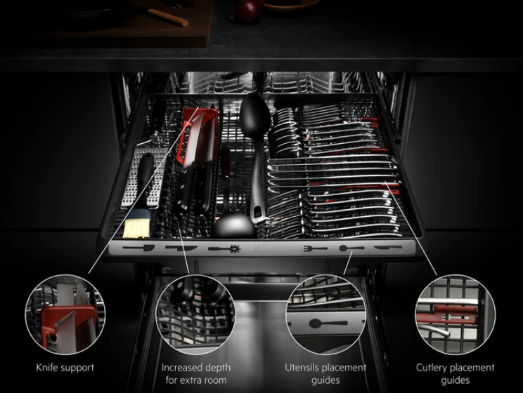 Szufladę MaxiFlex została zaprojektowana w taki sposób, aby mogła pomieścić wszystkie sztućce i przybory kuchenne. Ruchome przegródki i głęboka szuflada pozwolą Ci łatwo załadować je do zmywarki niezależnie od ich wielkości i kształtu.