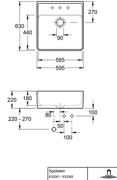- Charakterystyczny zlewozmywak nakładany o wymiarach 59,5 x 63 x 22 cm.