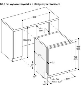 - Wymagana przestrzeń instalacyjna (WxSxG) 865-925 x 600 x 550