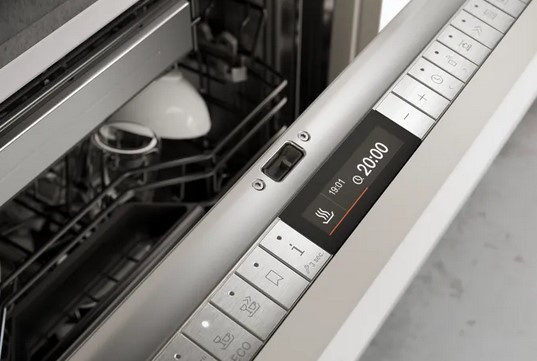 - Wyświetlacz ze wskaźnikiem czasu, elektroniczny wskaźnik braku soli i nabłyszczacza, wskaźnik dopływu wody.