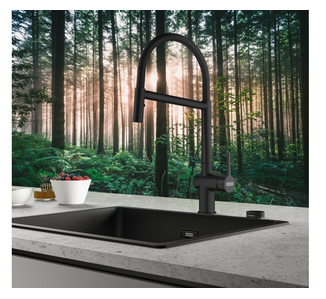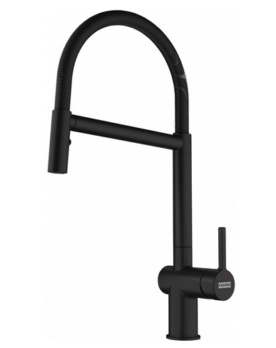 Bateria kuchenna o zaokrąglonym kształcie z ruchomą wylewką z funkcją prysznica w kolorze czarny mat. Baterie z linii Active Semi- Pro posiadają ceramiczną głowicę i laminarny strumień, który eliminuje większość rozprysków i ułatwia codzienne mycie i zmywanie. Co więcej posiadają technologię Eco, która pozwala oszczędzać wodę i energię.