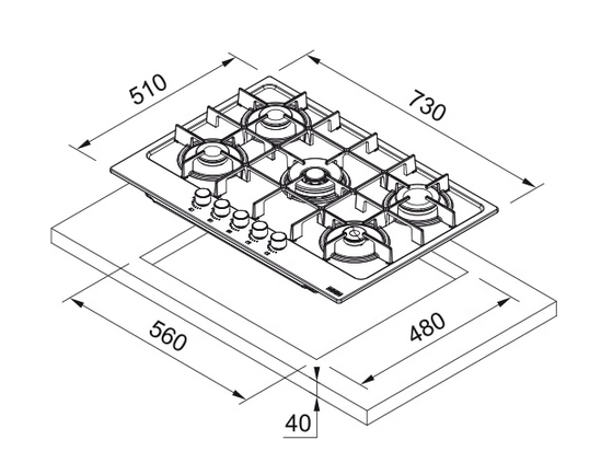 Płyta gazowa Maris w kolorze czarny mat posiada zapalarkę elektryczną zintegrowaną w pokrętłach, ruszty żeliwne (3 elementy) oraz zabezpieczenie przeciwwypływowe gazu. Jest ona częścią systemu Maris