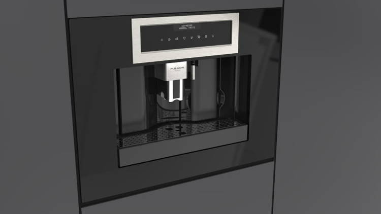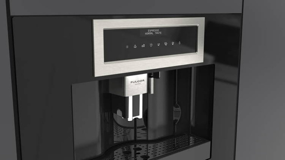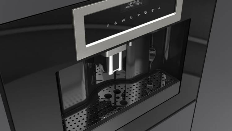 Automatyczny ekspres do kawy z oświetleniem z dwóch różnych źrodeł LED. Zamontowany na całkowicie wysuwanych prowadnicach teleskopowych