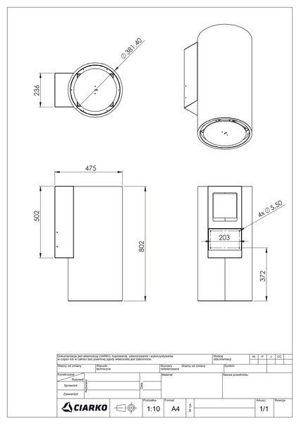 - Średnica wylotu powietrza/nie dotyczy opcji pochłaniacza 00 cm 150