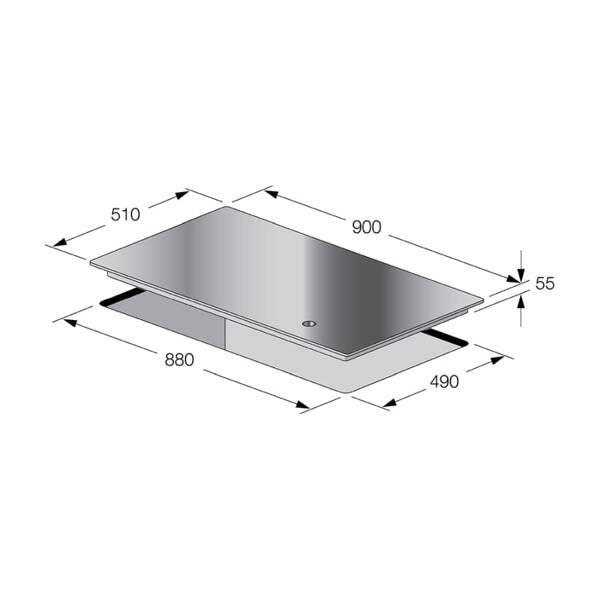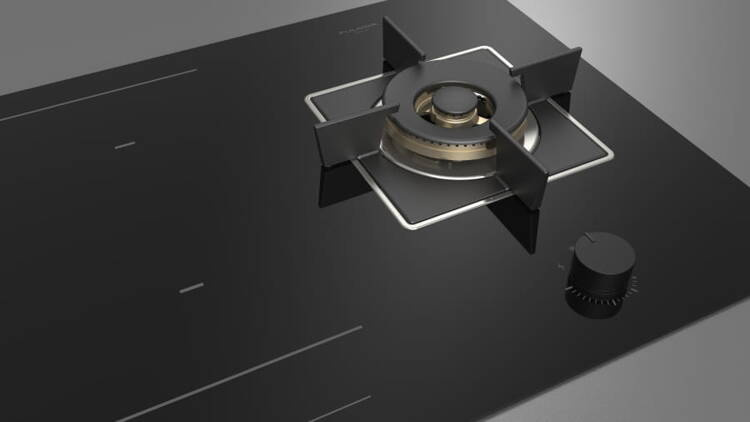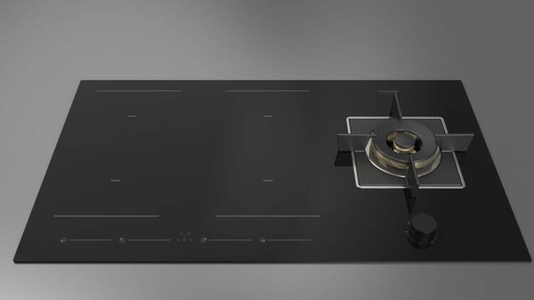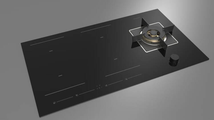 Płyta hybrydowa łączy w sobie zalety indukcji i specyfikę palnika gazowego typu wok o dużej mocy 4,0 kW z mosiężnym pierścieniem. Płyta indukcyjna posiada cztery strefy (w tym 2 łączone bridge) z dziewięcioma różnymi poziomami mocy. Wyposażona jest w dotykowe sterowanie suwakowe (Touch Slider) i cyfrowy wyświetlacz mocy wybranej dla każdego pola grzewczego. Posiada także timer zakończenia gotowania (automatyczne wyłączenie) oraz możliwość wyboru trybu utrzymywania ciepła. System bezpieczeństwa obejmuje automatyczne wykrywanie patelni, wyłącznik bezpieczeństwa, wskażnik ciepła resztkowego (H) oraz funkcję Stop-Gas dla palnika wok. Płyta wyposażona jest w akcesoria: skrobak do czyszczenia powierzchni, żeliwną nakładkę do woka i redukującą do małych patelni.