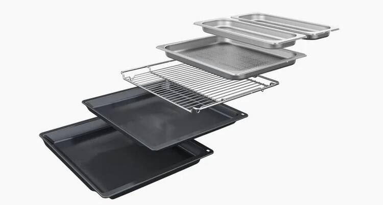 • Wyposażenie standardowe 1 x Emaliowana blacha do pieczenia, 1 x Ruszt, 1 x Brytfanka (blacha) uniwersalna, 1 x Pojemnik do gotowa. na parze perfor., XL, 1 x Pojemnik do gotowan. na parze perfor., M, 1 x Pojemnik do goto. na parze nieperfor., M