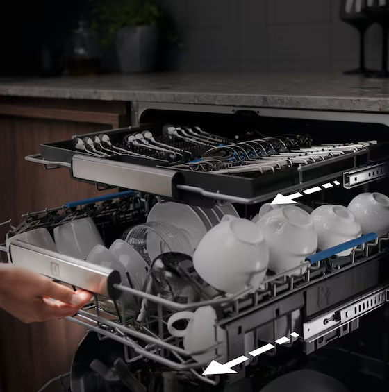 Unikalny mechanizm ComfortLift sprawi, że już nigdy nie będziesz schylać się, aby załadować lub rozładować zmywarkę. Wystarczy lekko ścisnąć uchwyt, aby dolny kosz płynnie uniósł się do góry. To pierwsze tego typu rozwiązanie na świecie. .