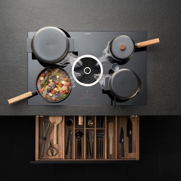 - BORA Basic – silny duet. Z połączenia pola grzewczego o dużej mocy oraz z wyciągu oparów wykreowaliśmy atrakcyjny moduł.