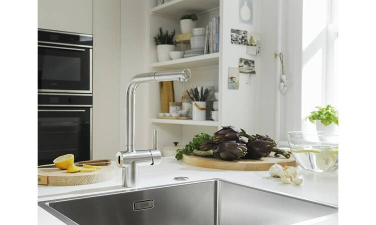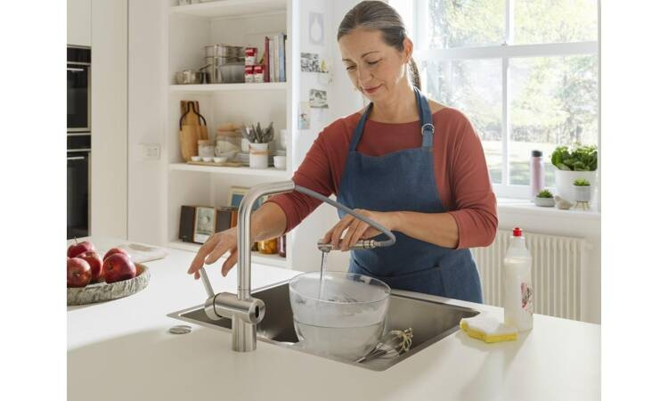 - Bateria kuchenna z wyciąganą wylewką z serii Atlas Neo Sensor w wykończeniu stal szlachetna. Atlas Neo Sensor to innowacyjnabateria, która oprócz tradycyjnego sterowania ręcznego zachwyci wyjątkową funkcją sterowania sensorycznego, dzięki której uruchomis