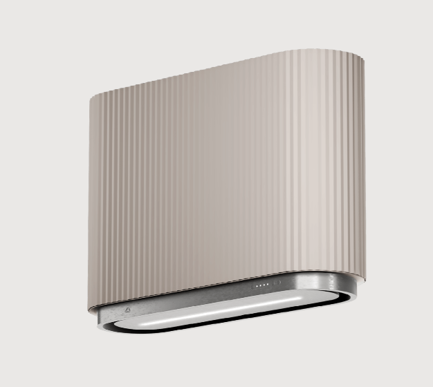 Okap przyścienny Mono to prawdziwe dzieło sztuki w twojej kuchni. Jego karbowana forma, jakby rzeźbiona przez mistrza, wyróżnia się na tle minimalistycznego designu. Liczne równoległe ryfle, otaczające cylindryczną bryłę, nie tylko nadają urządzeniu wyjątkowego charakteru, ale także tworzą subtelne i eleganckie świetlne kontrapunkty.