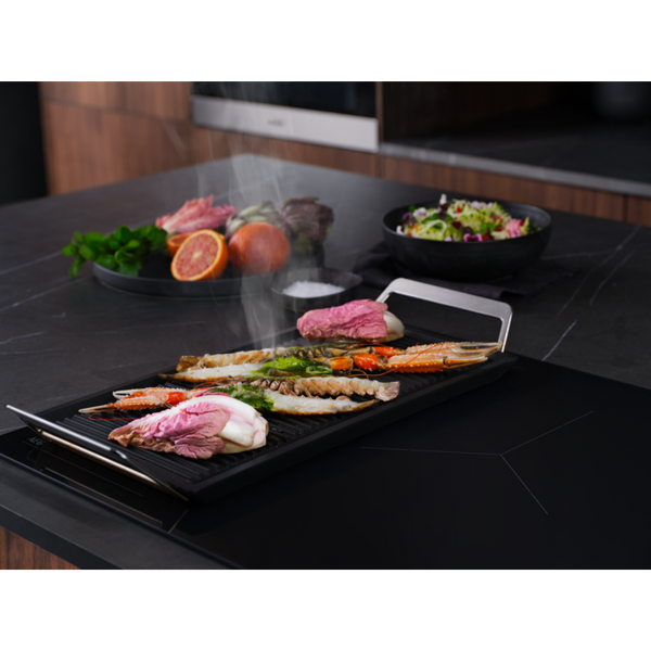 Funkcja Bridge umożliwia połączenie dwóch stref grzejnych w jedną dużą. Dzięki temu ciepło jest równomiernie rozprowadzane po całej powierzchni. Idealne rozwiązanie w przypadku dużych garnków lub patelni Infi-Gril.