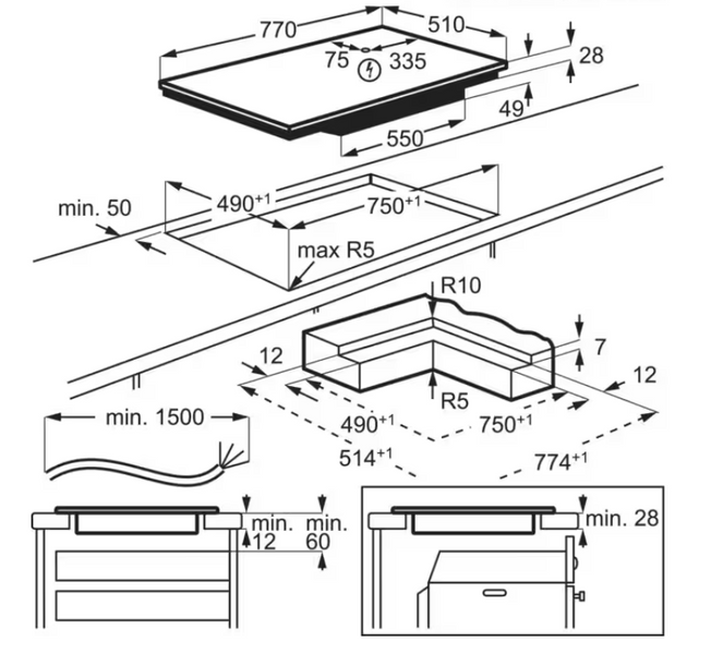 Wymiary wycięcia (W x S x G) [mm]: 44x750x490