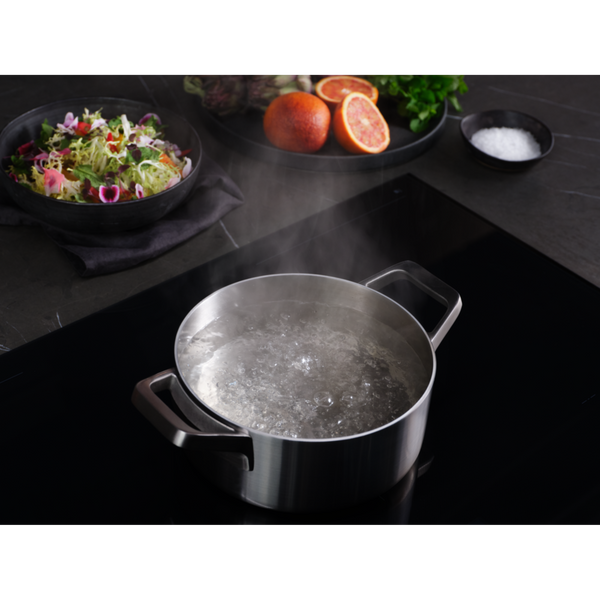 Płyta indukcyjna SenseBoil & Fry automatycznie reguluje temperaturę, aby zapewnić idealne warunki do przygotowania Twojego posiłku - doskonałe efekty za każdym razem, niezależnie od tego, czy gotujesz makaron czy smażysz steki.