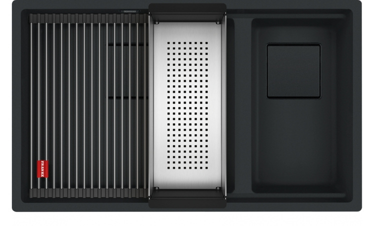 Komora do podbudowy z linii Kanon KNG 160-46-21 w zestawie zawiera wkładę ociekową i rollmatę oraz korek automatyczny Flow Pro, sterowany przyciskiem Easy Click w wykończeniu czarny mat. Dzięki specjalnie zaprojektowanej krawędzi wewnętrznej, można komfortowo korzystać z akcesoriów na dwóch poziomach pracy. Zlewozmywak wyprodukowany jest z materiału Fragranite, którego bazą jest naturalny granit.Dzięki zastosowaniu bardzo drobnych cząsteczek tego materiału, uzyskano zlewozmywak idealnie gładki i delikatny w dotyku. Wszystkie zlewozmywaki fragranitowe FRANKE, wyprodukowane są z wykorzystaniem technologii Sanitized®, ograniczającej rozwój bakterii do 99%. Wszystkie zlewozmywaki z Fragranite są odporne na zarysowania, uderzenia i zaplamienie, a ich kolor nie zmienia się z upływem czasu. Są również odporne na krótkotrwałe działanie wysokiej temperatury (do 280°C przez 15 sek.).