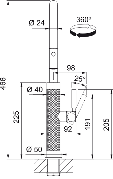 Bateria kuchenna z wyciąganą wylewką z funkcją prysznica Mythos Masterpiece pull-out spray. Model stworzony, aby być atrakcją w Twojej kuchni, wyróżnia się on wysokim i smukłym wzorzystym korpusem oraz wyrafinowanym mieszaczem. Jego wysoka wylewka sprawia, że z łatwością napełnisz duże garnki czy wazony. Innowacyjny, ruchomy przegub wyciąganej wylewki zwiększa zakres ruchu i komfort pracy. Zakres ruchu dźwigni mieszacza 0°-100° ułatwia sterowanie strumieniem wody, również wtedy, kiedy bateria znajduje się blisko ściany. Model posiada strumień laminarny - specjalna konstrukcja aeratora zapewnia zwarty i krystaliczny strumień wody eliminujący rozpryski oraz ceramiczną głowicę, która jest niezawodna w kontakcie z wodą.