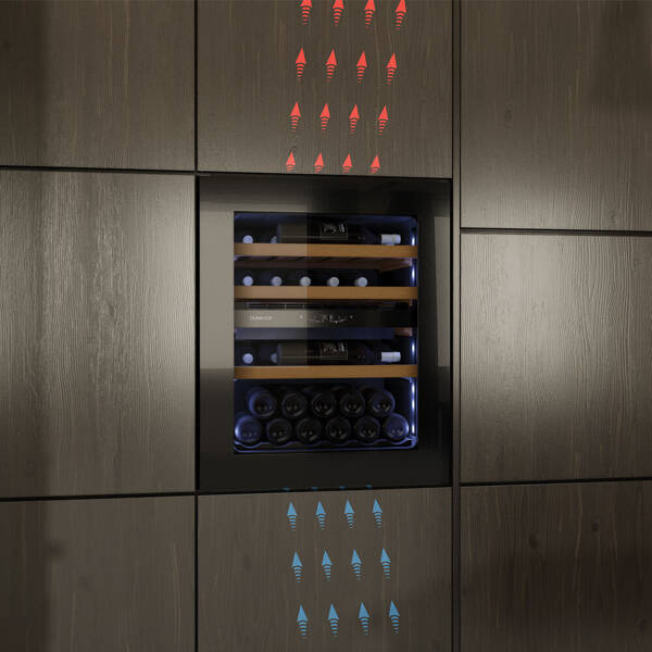 - Zintegrowany design:Zaprojektowana tak, aby idealnie komponować się z wystrojem kuchni lub baru, ta chłodziarka do wina idealnie wpasowuje się w każdą przestrzeń. Jej elegancki, minimalistyczny design zwiększa walory estetyczne Twojego domu.