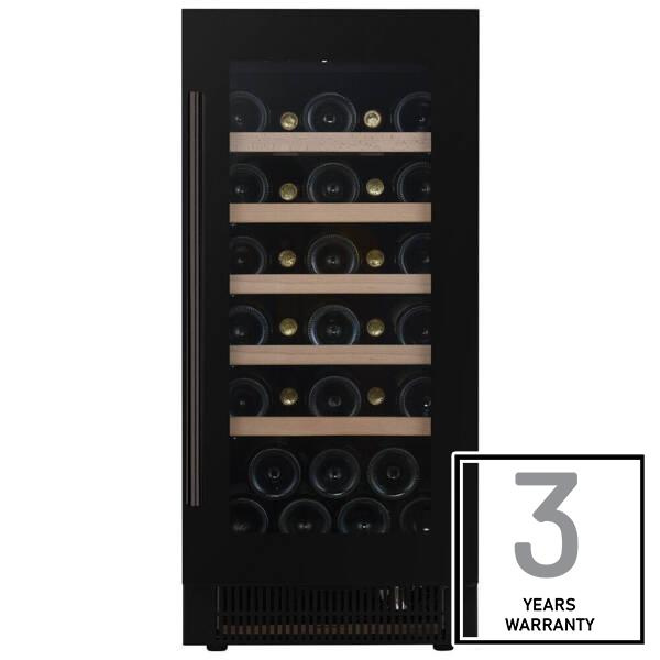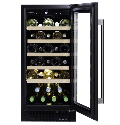 Model podblatowy z pojedyńczą strefą temperaturową i możliwością przechowywania 32 butelek, wyróżniający się eleganckim wyglądem zewnętrznym i uchwytem drzwi ze stali nierdzewnej. Model DUNAVOX Flow-32 pasuje idealnie do nowoczesnej kuchni. Butelki są umieszczone na solidnych drewnianych półkach i oświetlone białym, bursztynowym i niebieskim oświetleniem wewnętrznym LED. Należy zwrócić uwagę, że model ten jest przeznaczony do zabudowy podblatowej.
