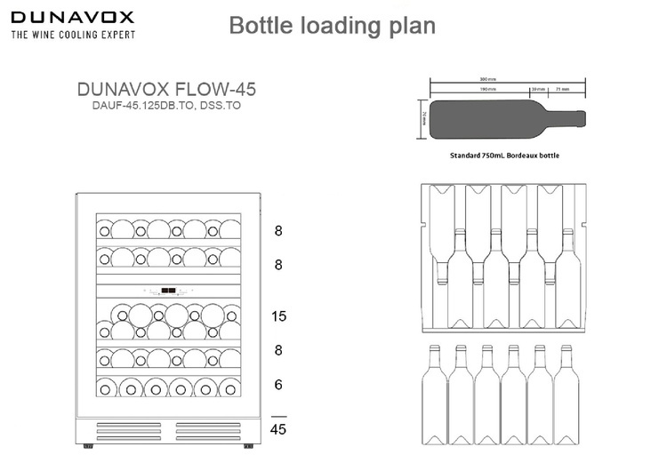 • Pojemność - ilość butelek (butelka Bordeaux 0,75 litra) 45