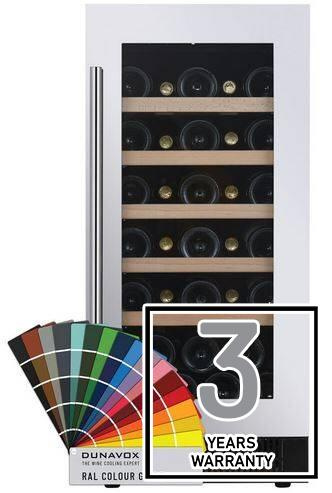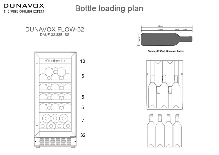 Model podblatowy z pojedyńczą strefą temperaturową i możliwością przechowywania 32 butelek, wyróżniający się eleganckim wyglądem zewnętrznym i uchwytem drzwi ze stali nierdzewnej. Model DUNAVOX Flow-32 pasuje idealnie do nowoczesnej kuchni. Butelki są umieszczone na solidnych drewnianych półkach i oświetlone białym, bursztynowym i niebieskim oświetleniem wewnętrznym LED. Należy zwrócić uwagę, że model ten jest przeznaczony do zabudowy podblatowej.