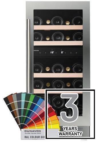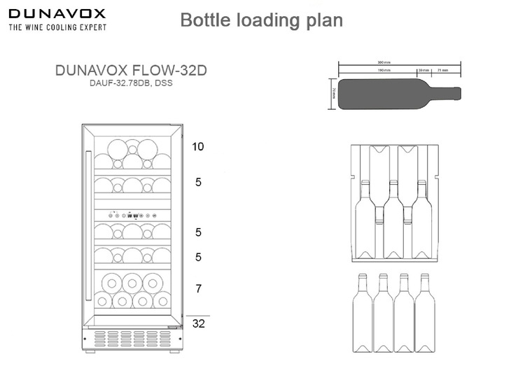 Model podblatowy, dwustrefowy i możliwością przechowywania 32 butelek, wyróżniający się eleganckim wyglądem zewnętrznym i uchwytem drzwi ze stali nierdzewnej. Model DUNAVOX Flow- 32D pasuje idealnie do nowoczesnej kuchni. Butelki są umieszczone na solidnych drewnianych półkach i oświetlone białym, bursztynowym i niebieskim oświetleniem wewnętrznym LED. Temperatura w dolnej strefie musi być niższa niż w górnej. Należy zwrócić uwagę, że model ten jest przeznaczony do zabudowy podblatowej.